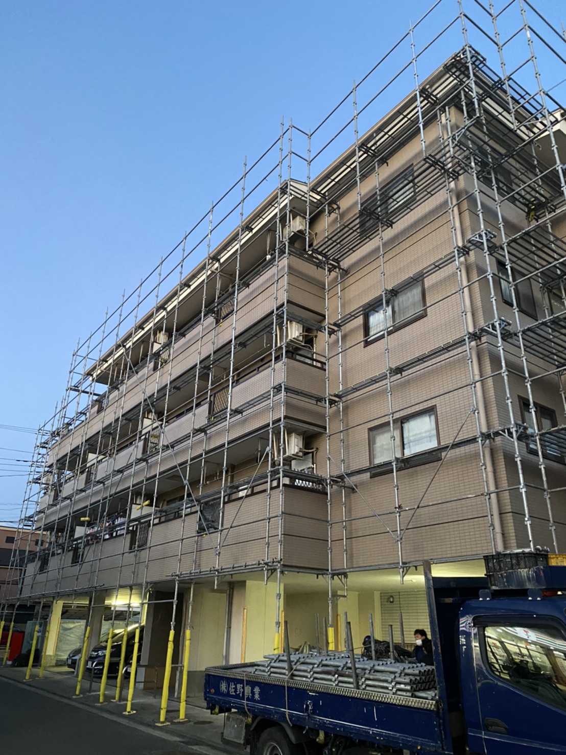 神奈川県厚木市にてマンションの仮設足場工事を施工させて頂きました。