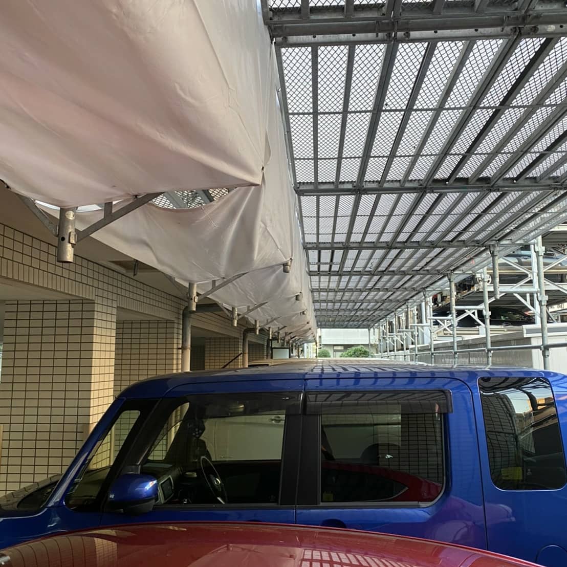 こちらの現場は道路に足場がはみ出る為、道路占用許可が必要になります。