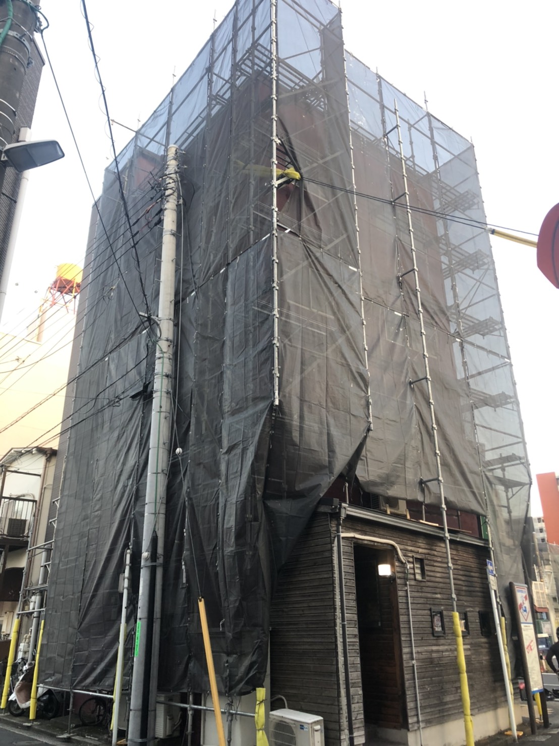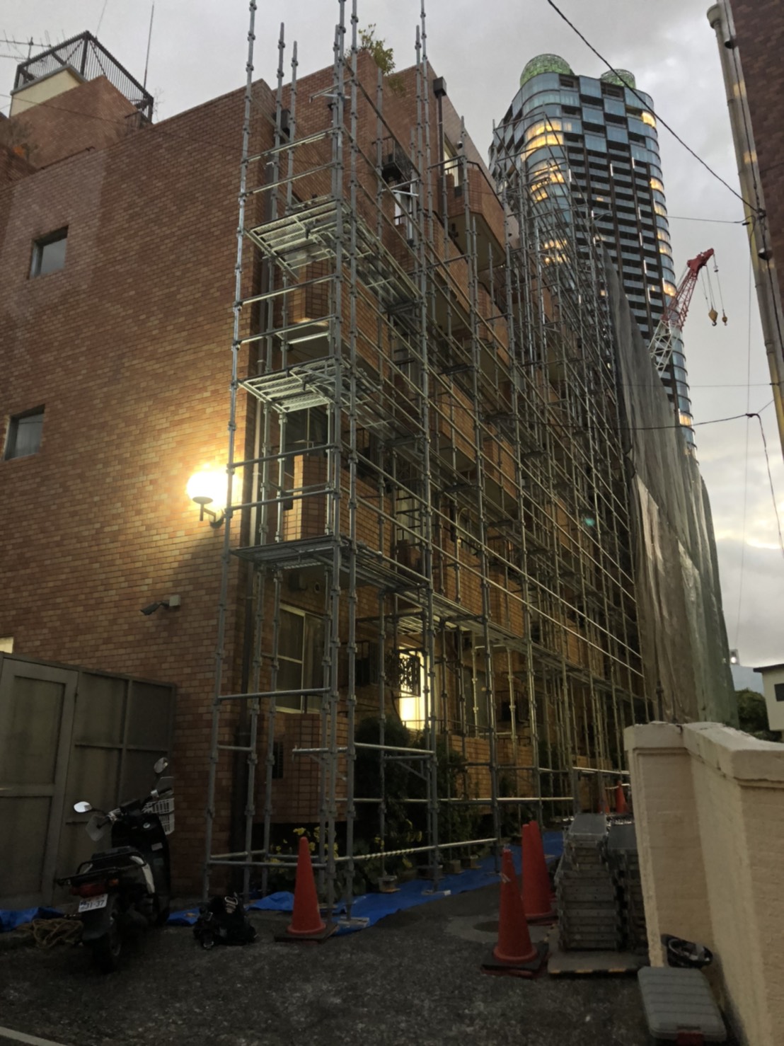 横浜市で4階建ての仮設足場工事を施工させて頂きました。