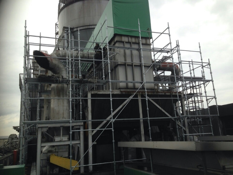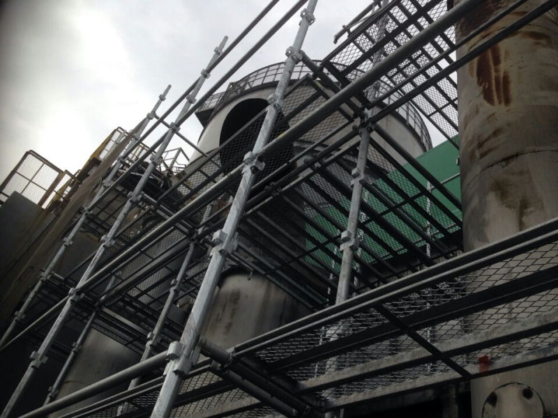 工場敷地内にある、煙突とタンク等解体の足場です。