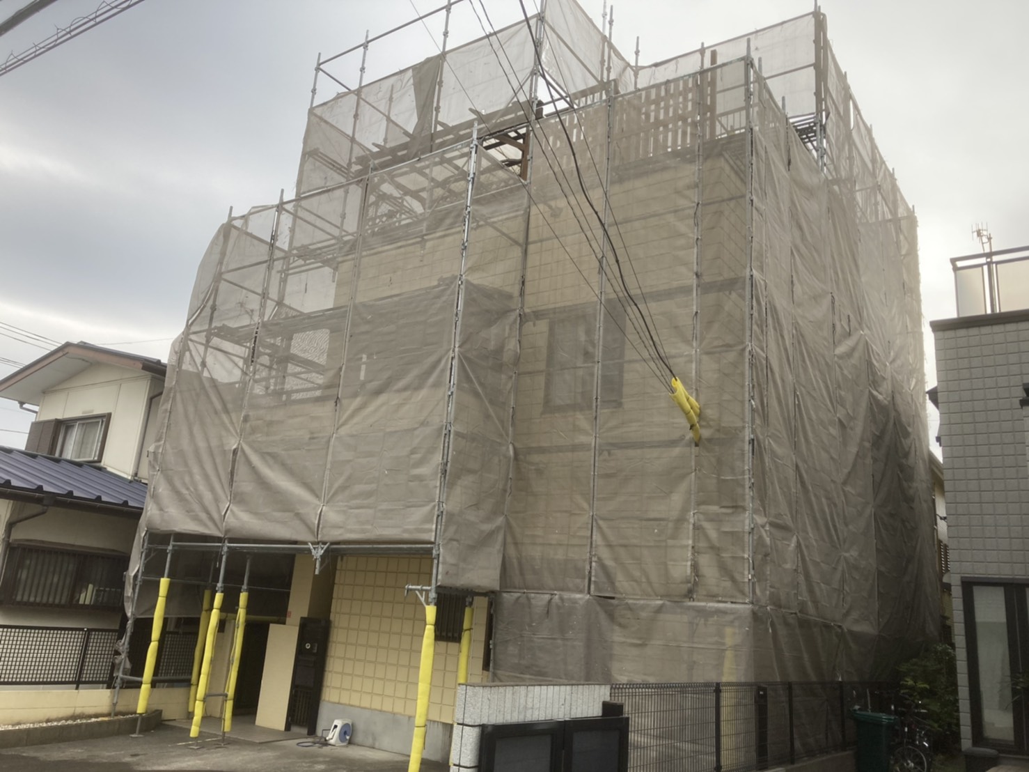 神奈川県座間市にてアパートの仮設足場工事を施工させて頂きました。